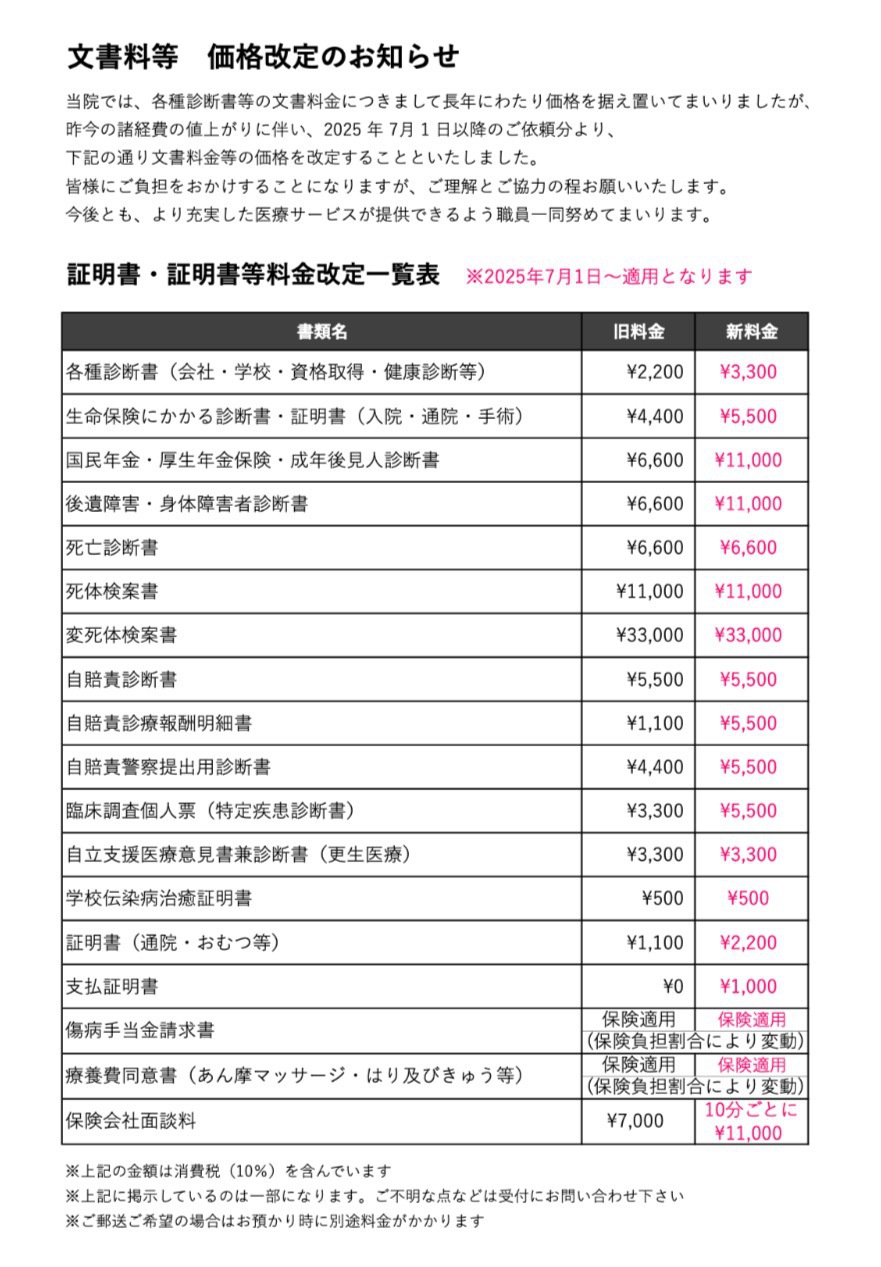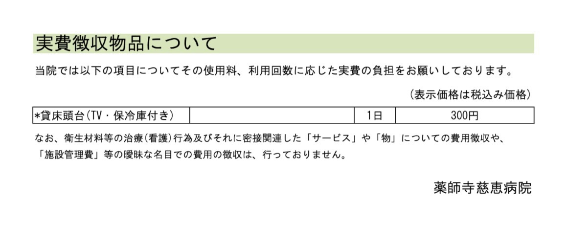 保険外負担に関する料金表