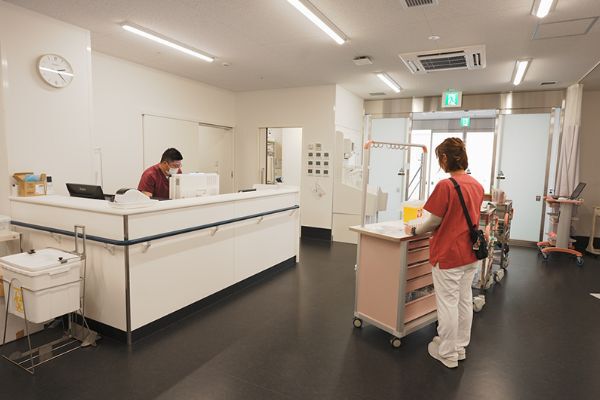 X線検査・超音波検査・内視鏡検査などに関わる部門です。健康診断、がん検診等を実施する医療機関として様々な検査を行っており、特にマンモグラフィー装置があり、女性スタッフによる撮影が行われています。